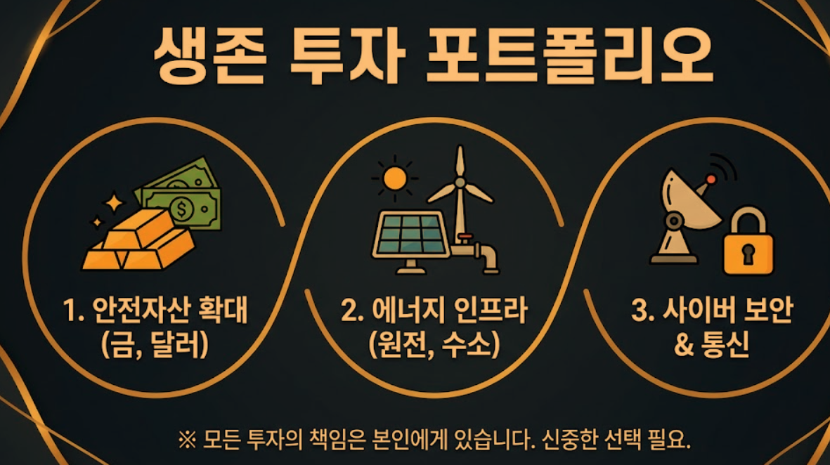 - 실물 금(Physical Gold) 비중 확대: 디지털 금융망 해킹 및 사이버전에 대비하여 실물 자산의 가치는 역사적 신고가를 경신할 것으로 예측됩니다.